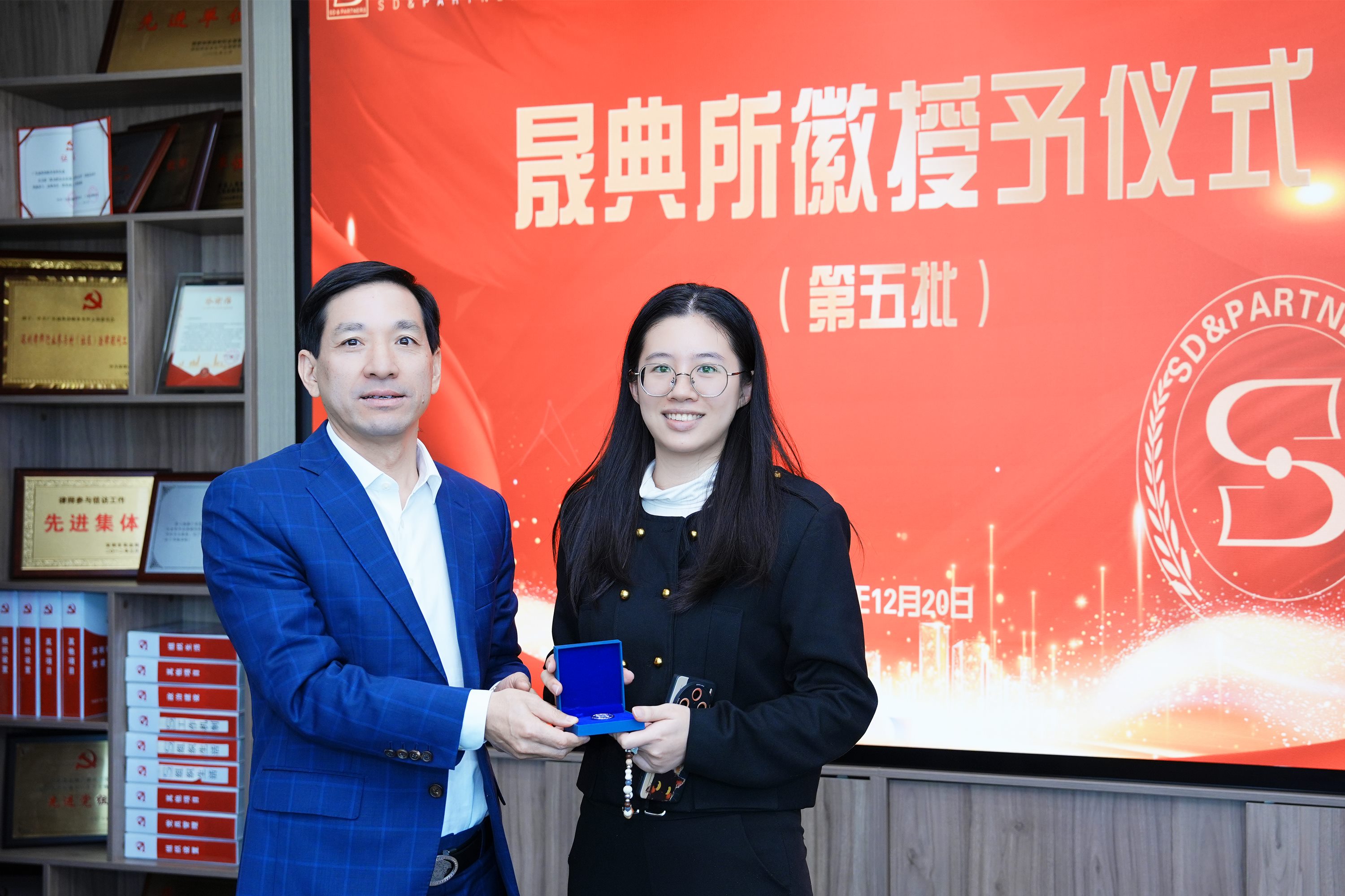 On the afternoon of December 20, the fifth batch of Shengdian emblem presentation ceremony was held in the large conference room on the 17th floor of Shengdian Law Firm.