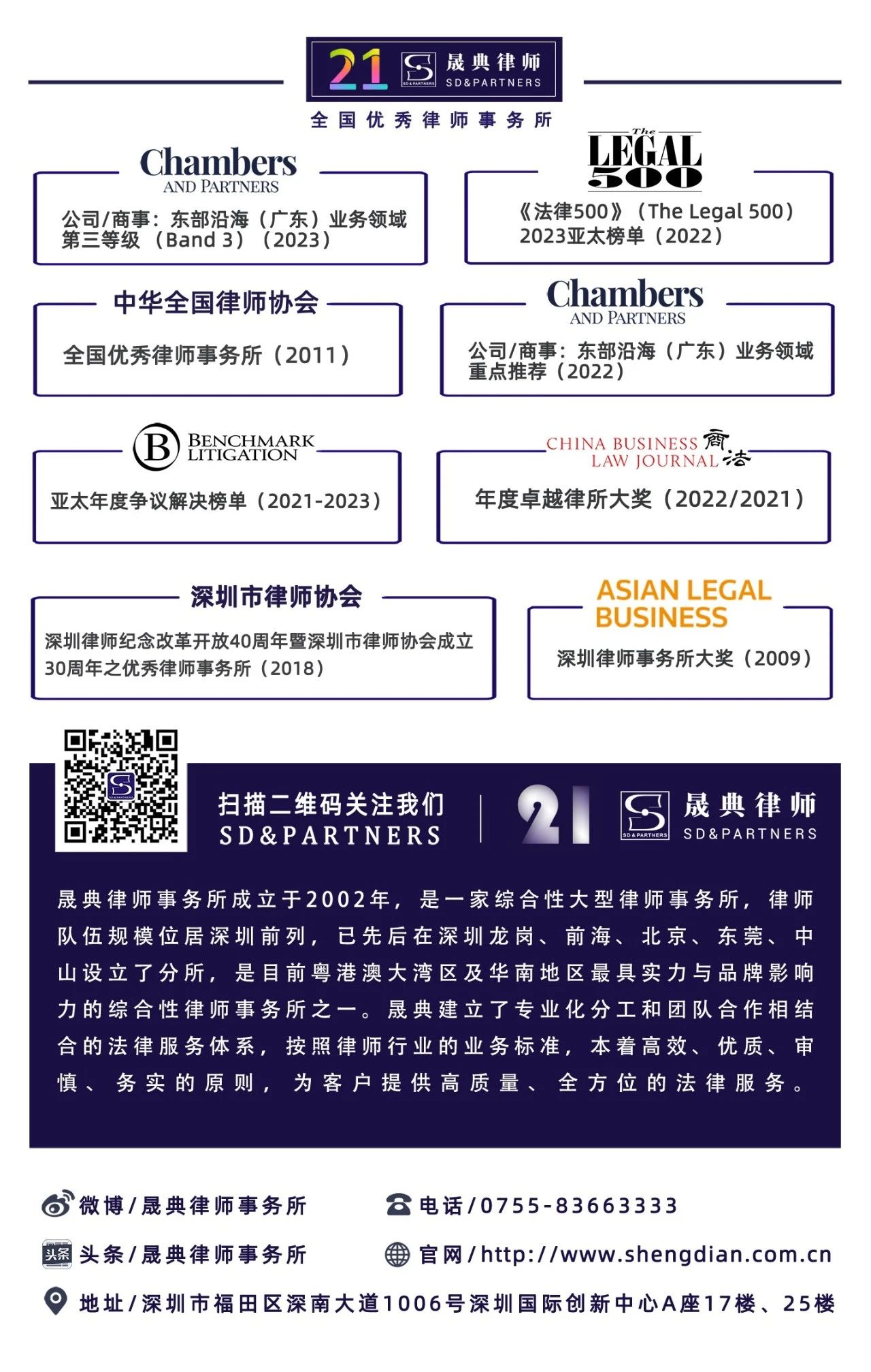 graduated from Shenzhen university law school, now he is senior partner of shengdian law firm, deputy secretary of shengdian party Committee, co-head of shengdian bankruptcy administrator (level 2), deputy editor-in-chief of shengdian lawyer review (law publishing house), arbitrator of Maoming arbitration committee, member of legal professional committee of Guangdong province and Shenzhen city lawyers association, he was a member of the Business Development Committee of the Shenzhen Association of Bankruptcy Administrators. Now it is China Resources Group (the first-level central enterprise of the State Council, the key state-owned backbone enterprise, and the world's top 500 enterprise), China Coal Energy Group Co., Ltd. (the first-level central enterprise of the State Council, top 500 enterprises in the world), Shenzhen Baoan District Investment Management Group Co., Ltd. (first-class state-owned enterprise in Baoan District), Shenzhen Longgang Financial Investment Holding Co., Ltd. (first-class state-owned enterprise in Longgang District), Shenzhen Water Planning and Design Institute Co., Ltd. (301038.SZ, state-owned listed company), Shenzhen Data Exchange warehousing lawyer/expert, Shenzhen Enterprise Evaluation Association (SZEEA), Shenzhen Dingcheng Technology and Economic Evaluation Center expert. Qualified as a securities practitioner, qualified as a senior manager of a private equity fund, qualified as an independent director of a listed company, and holds a senior corporate compliance certificate.