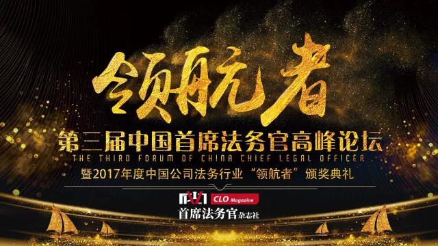《2017年度中国公司法务行业“领航者”十佳榜单》是由《首席法务官》杂志牵头主办,中国首席法务官研究院和中国法治企业研究院协办,共同推出的评选活动,旨在寻找中国公司法务行业的优秀法务部门、标杆律所以及杰出法务人员。经过数月的网络投票评选并综合专家评审的专业意见,其中超过10万的线上线下选票,最终评选出四个部门大奖、四个人物大奖以及两个中介服务机构大奖。