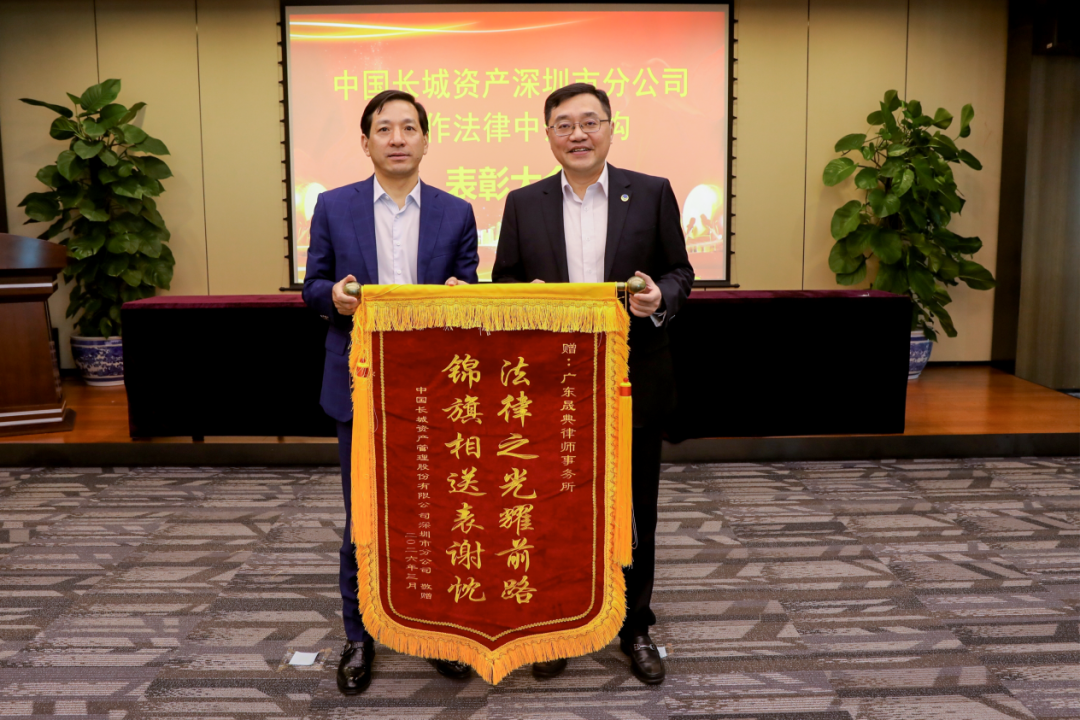 喜讯|长城资产深圳分公司向晟典赠送锦旗致谢