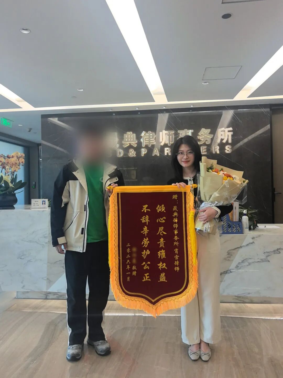 近日,晟典律师事务所许洁律师、肖雪律师、张悦文律师先后收到当事人赠送的锦旗,表达委托人对代理律师专业能力、敬业精神的高度认可与诚挚谢意。