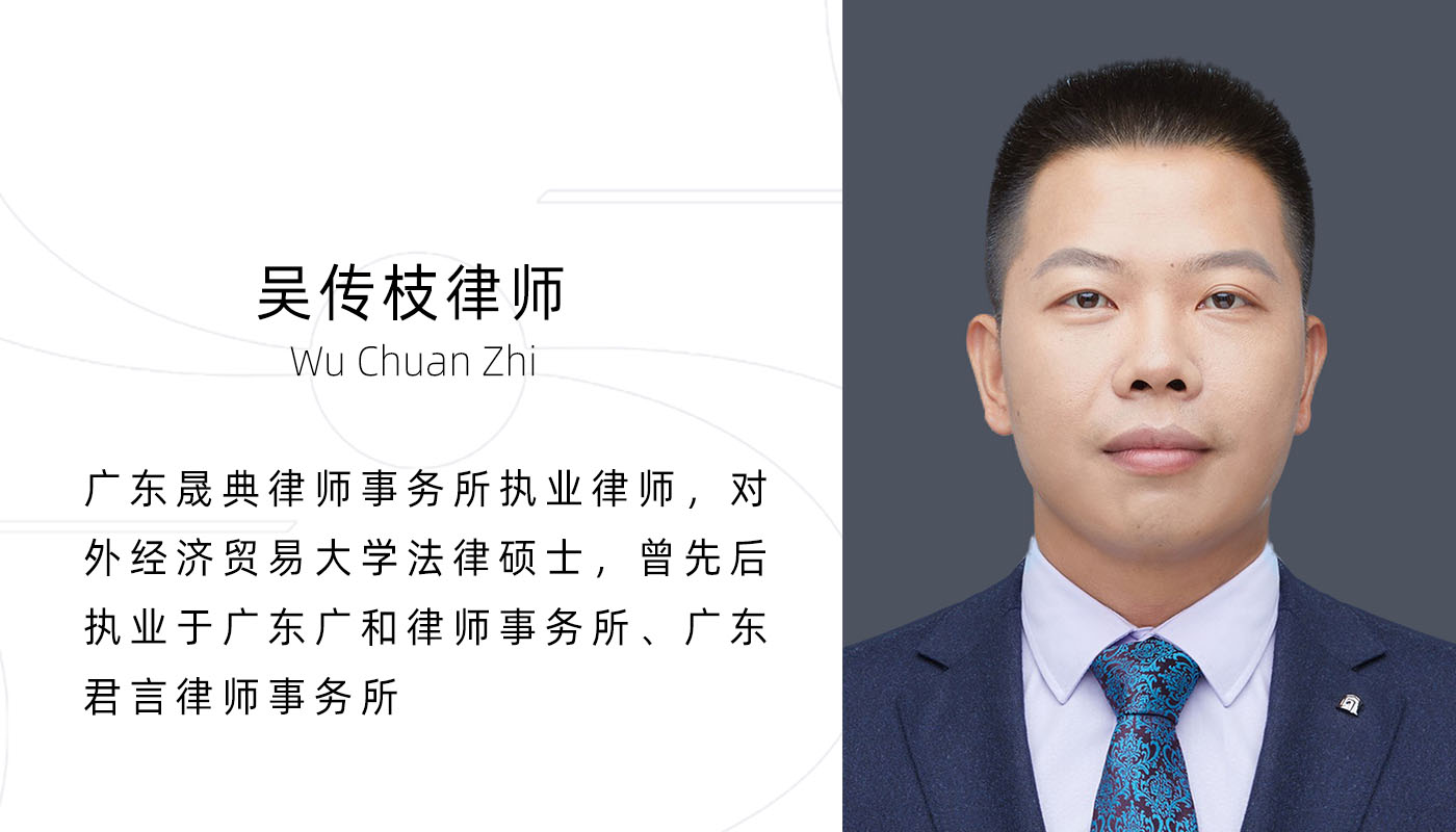 吴传枝律师:2008 年毕业于对外经济贸易大学,获法律硕士学位,曾先后执业于广东广和律师事务所、广东君言律师事务所,现为晟典律师事务所执业律师。执业领域包括常年法律顾问、民商事案件(经济合同纠纷、婚姻继承、建设工程合同纠纷、公司法律纠纷)、刑事辩护(经济犯罪辩护)。